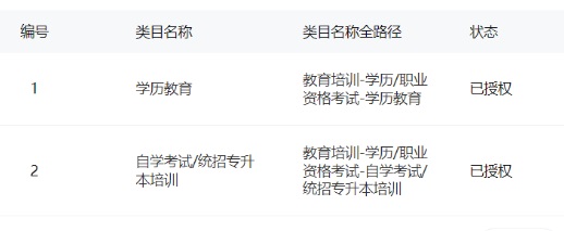 一级类目: 教育培训 | ||||